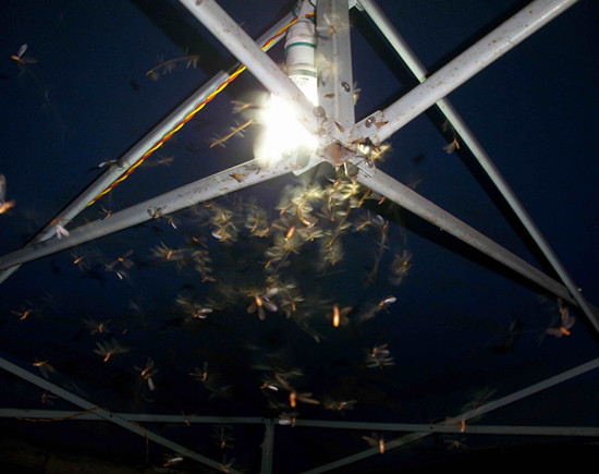 (3)在大雨來臨時或者悶熱天氣里,發現長翅蟲子室內成群飛翔;或在傍晚,發現有翅的蟲子在室內燈下大量聚集飛翔。這說明屋中有蟻或是新蟻分飛進屋。